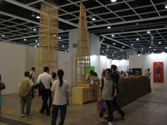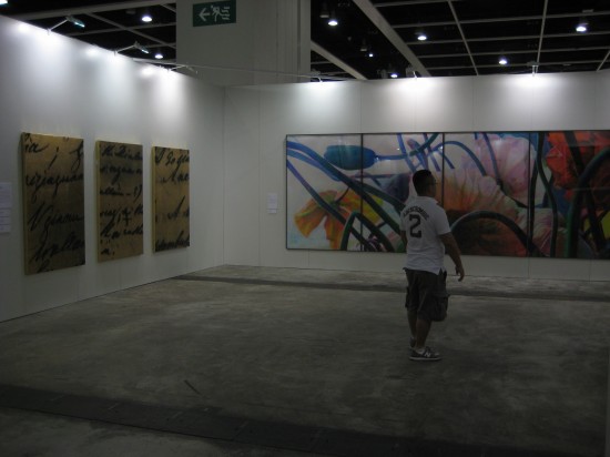 Today Artist Profile continued their tour of the 2010 Hong Kong International Art Fair. In its third year and with an increased participation from international galleries, the fair hosts a large and varying array of artists on exhibition. On the floor, works by Damien Hirst sit alongside pieces by collaborative artist duo Gilbert & George. A collage of eastern and western art hangs amongst one another. A mixture of genre, mediums, styles and outputs comes together in what can only be described as an overwhelming visual – and at times audible – sensation.