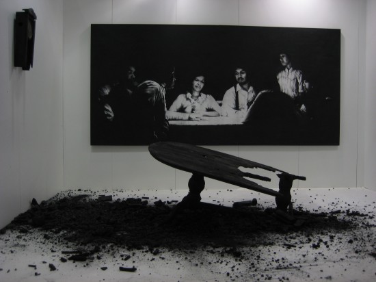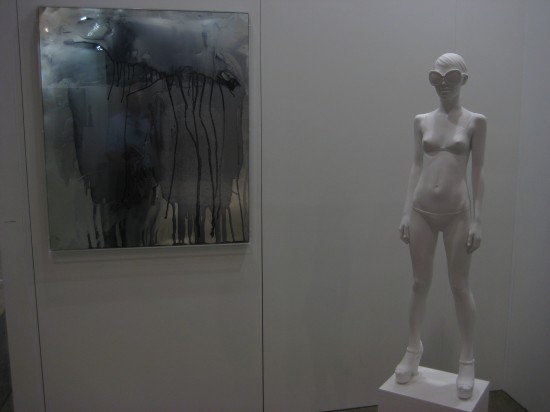 On a darker palette, Roslyn Oxley9 Gallery has brought over both landscape and portrait works by Bill Henson from his current exhibition in Sydney.  GRANTPIERRIE allows Lionel Bawden to bursts off the walls with his coloured pencil sculpture creations while Raafat Ishak, represented by Sutton Galleries, shows 2D geometric works on board that give the illusion of 3D. Mori Gallery, arguably the most minimal stand in the entire fair, has installed Susan Norrie’s latest video piece SHOT which adorns the dimly lit white walls. And, by contrast, Conny Dietzschold has filled her space with sculptures of Robert Schad and Julia Davis‘s beautiful metallic stones.