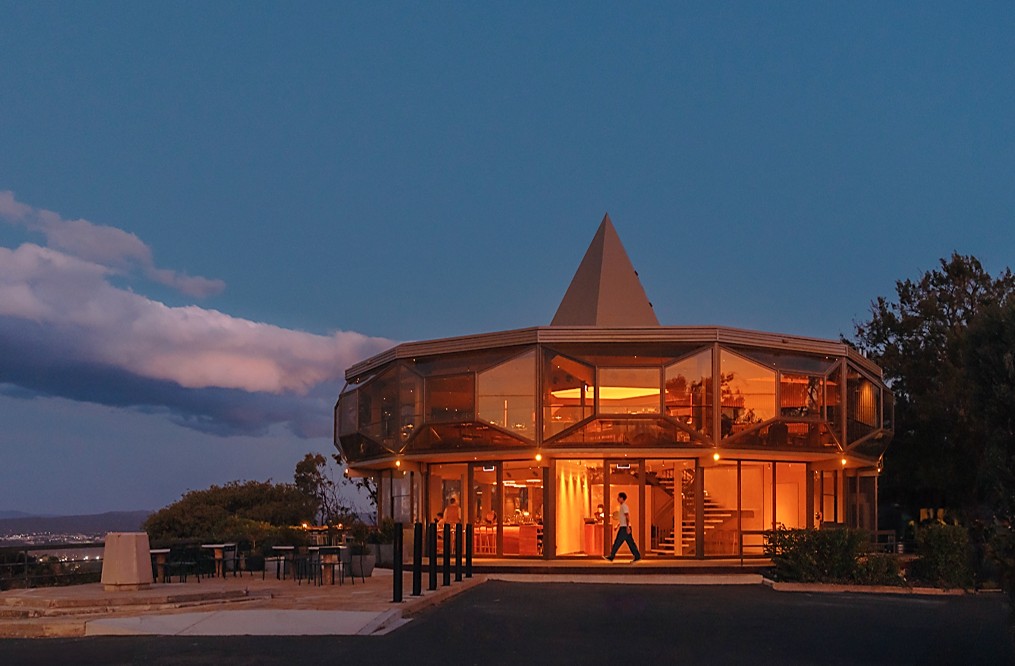 In November 2024, the twelve-sided polygon restaurant atop Red Hill reopened as Lunetta. It was originally known as Carousel and was designed by the Czech architect Miles Jakl in 1963 but was modified by Taglietti almost two decades later when it was closed for renovations before reopening in 1981. He added the convex bay windows and various fittings enjoyed today, which enhanced the futuristic aesthetic of the optimistic space-aged themes of Googie architecture that Jakl had employed.