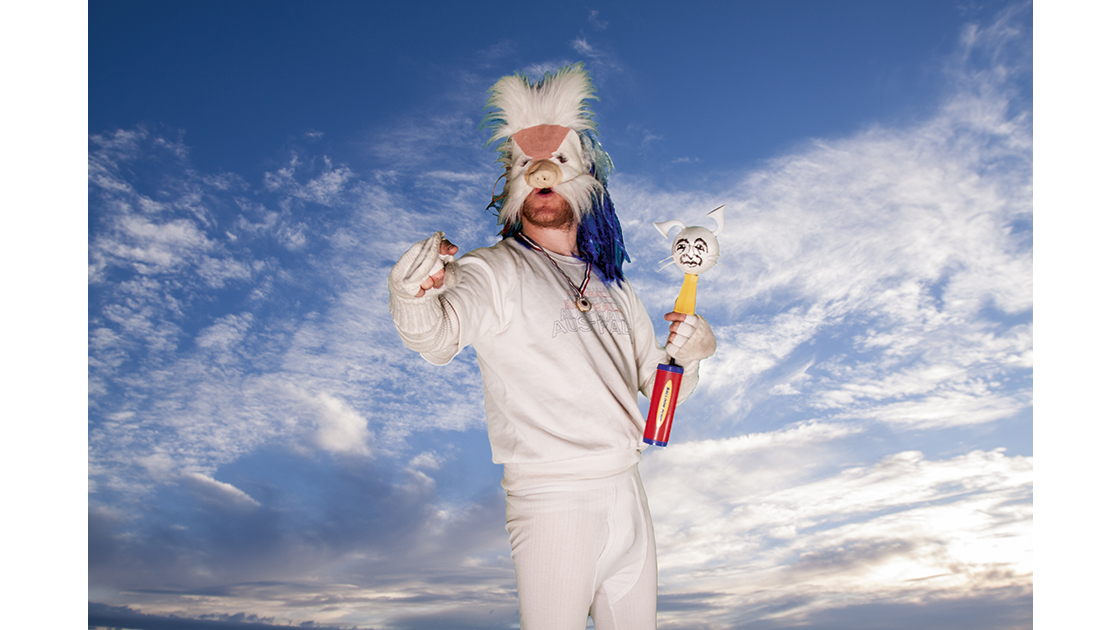Heath Franco’s next exhibition, ‘Home Town Two’ is a sequel to his cinematically inspired video ‘Home Town’ (2004). In it he draws upon horror movies of the 80s and 90s, Ren & Stimpy cartoons, popular culture and memory to create the wild, grotesque characters that populate his video works, all performed by himself.