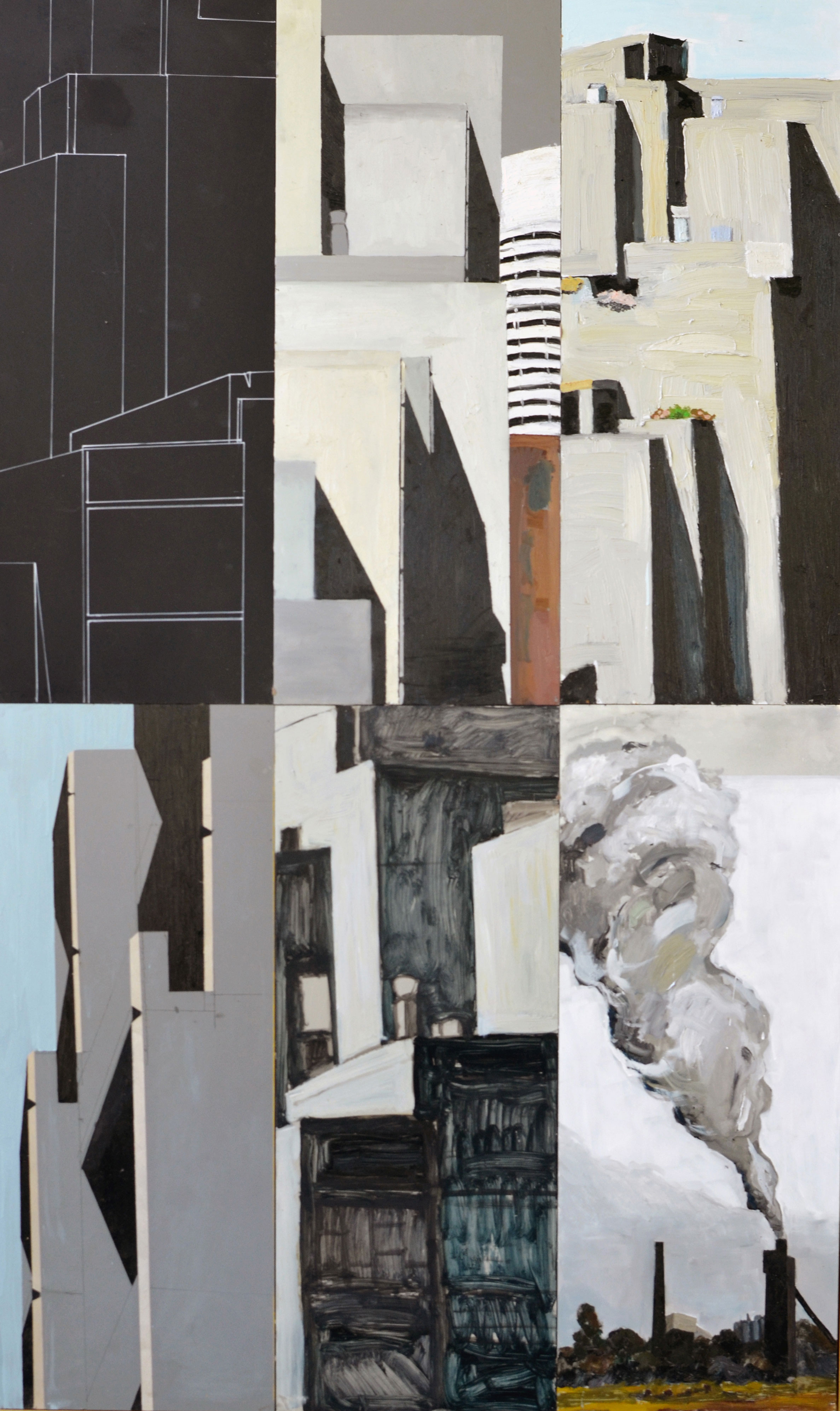 Drawing from a variety of sources, he states, “each painting contains notes, sketches, unfinished picture and line of poetry… in this work, layer and hybrid images construct a composition to build a grand narrative.”