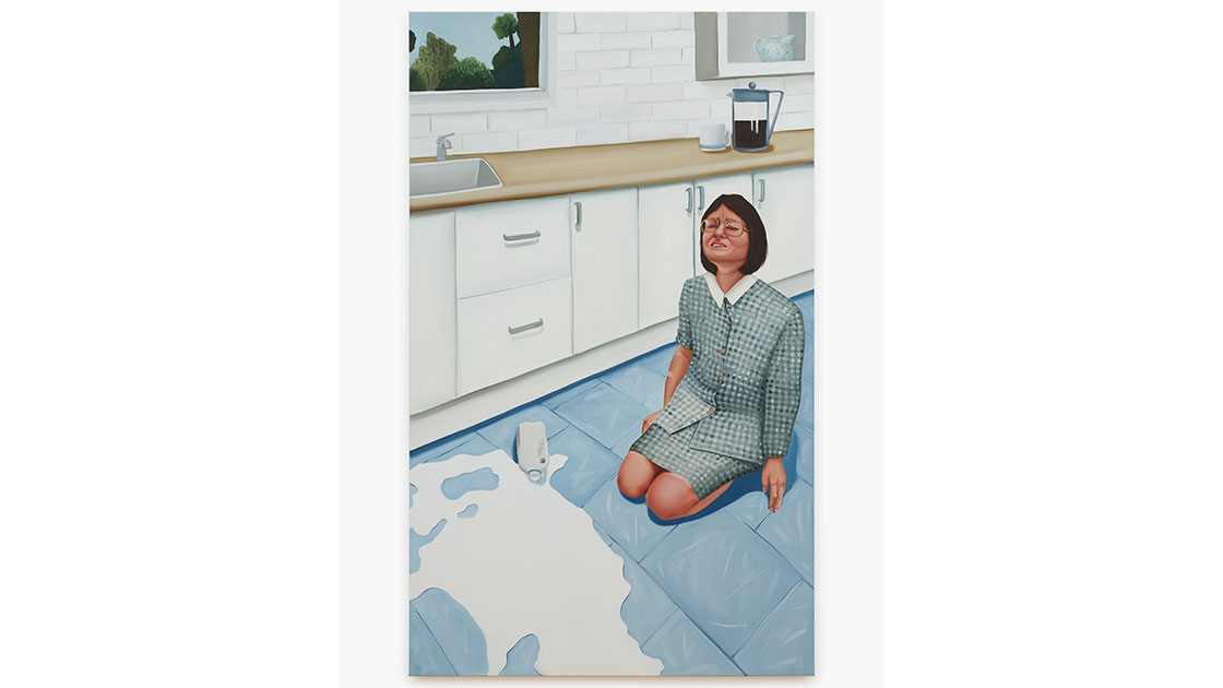 At the moment I am representing women of similar ages and whose lives centre around the everyday. They appear as the quotidian details of middle class suburbia. They can seem fed up or bored, but it is more of a sense of importance and stoicism. These women have become tropes for me to build on, exploring the duality between resignation and the dignity in embracing your average. I am preoccupied with the everyday and the worth that comes from living an ordinary life. Painting beautifully the mundane heroism is a large aspect of my work.