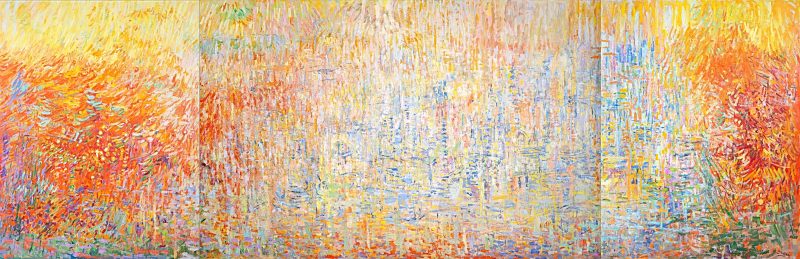 Salvatore Zofrea, Reflection of water in High Noon, 2024, oil on canvas,194 x 600 cm (triptych). Photographed by Effy Alexakis