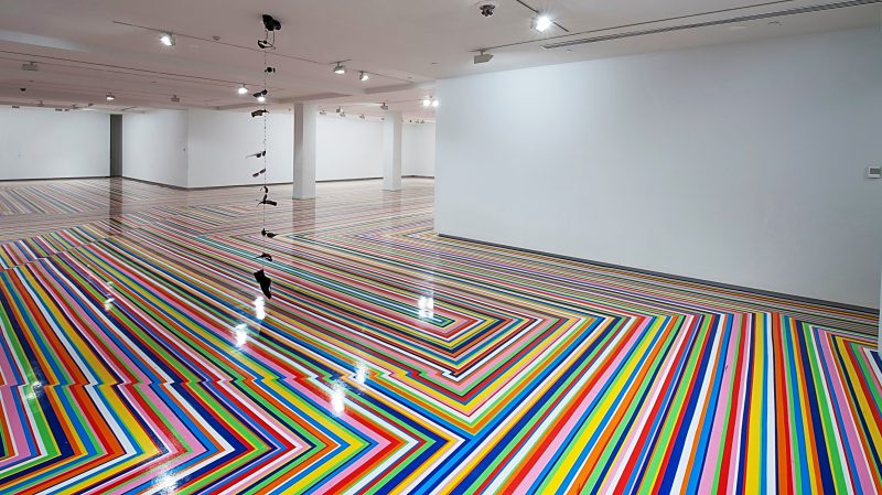 Installation view detail, Zobop, 2014, vinyl tape, dimensions variable, edition of 3 plus 1 artist’s proof. Exhibition, 19th Biennale of Sydney, Museum of Contemporary Art Australia, copy right the artist. Photographed by Sebastian Kriete.