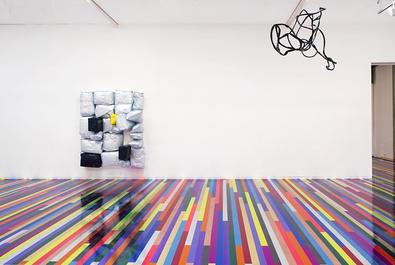 One of Zobop’s gifts is its disarming and recontextualising function for a space—a literal foundation atop which the artist’s works within an exhibition are presented. Across Lambie’s career, his paintings and sculptures have invariably begun with found objects—including furniture, ladders, sunglasses, and vinyl records: “The work is continually being informed by everything from what I find in the city, at flea markets and in junk shops, urban observations and architectural features, to context, found text, and overheard conversations. The language of the city.”