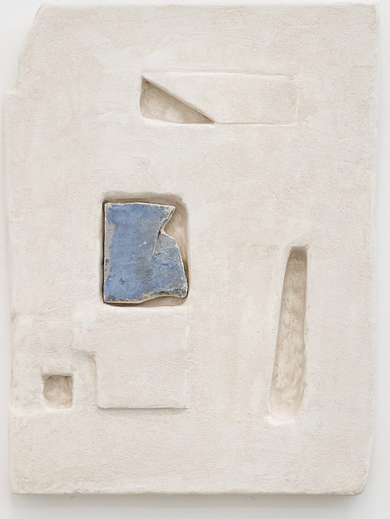 Strata (Blue), 2021, acrylic, gypsum, compost render extruded polystyrene, wood, 60 x 45 x 5 cm