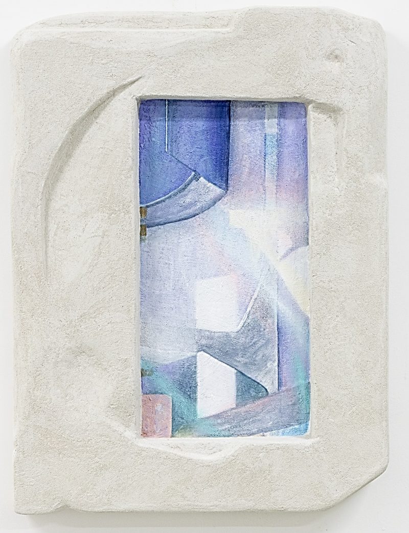 Kimber is a painter, though since mould-making entered his practice, it is arguable that either sculptural relief or abstract painting has stood forward in any given work or series. In his recent Tablet works, 2023, there is more of a shared stage for these elements—with relief acting as a frame for abstract paintings concerned with the behaviour and quality of lens flares and other light effects.