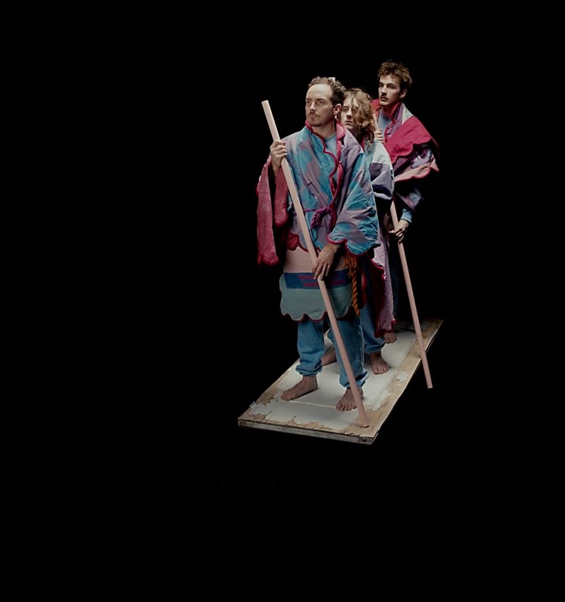 The elements of theatre—the stage, the costumes, the performer and the audience—are all materials for her to play with as she builds narrative and form. Understanding, and taking on board each of these roles, and recognising the prevailing theatrical tropes, enables Plummer to also subvert them—helping her to break down the fourth wall between the audience and the actors. As director, she holds the strings to the delicate balance of truth and fiction within the architecture of theatre, as she entangles the viewer within a half-built set, or draws attention to the heavily hand-stitched costumes, imbuing her fabricated world with an absurdist, gritty realism.