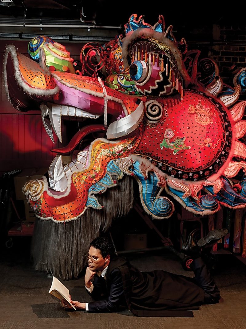 Throughout the exhibition, artists blend Chinese visual traditions with First Nations perspectives and contemporary forms. Lloyd Gawura Hornsby’s New Beginnings, 2024; Gordon Hookey’s Dragonserpent, 2024; and Jason Wing’s Serpent People (Boy with Snake Belly), 2024, all explore mythological and symbolic connections. Christian Thompson’s House of Gold, 2024, offers a performative take on heritage and transformation, while Jenna Lee’s illuminated works To Light Up: Memories and To Light Up: Stories, both 2024, evoke remembrance and continuity. Damien Shen’s Tut, Yee, Sahm, 2019, reflects on ancestral relationships and cultural inheritance.