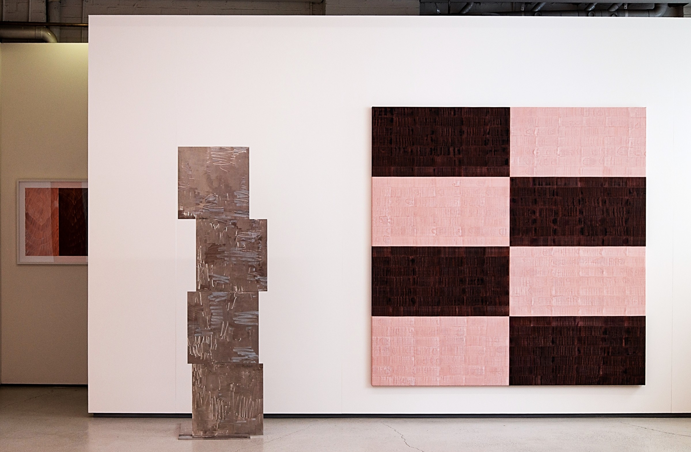 Pulse, the title of his current exhibition at Utopia Art Sydney, alludes to the rhythmic equilibrium of parts that has long characterised his work. As a painter Hodges strives for simplicity and order, alternating between geometric and natural motifs; as a sculptor he realises a similar range of forms in solid materials that stand their ground in environments beyond the gallery. His work lives through its facture: striving for elegant efficiency, he makes no direct declarations of meaning, trusting that materials become articulate when nourished by the maker’s experience.