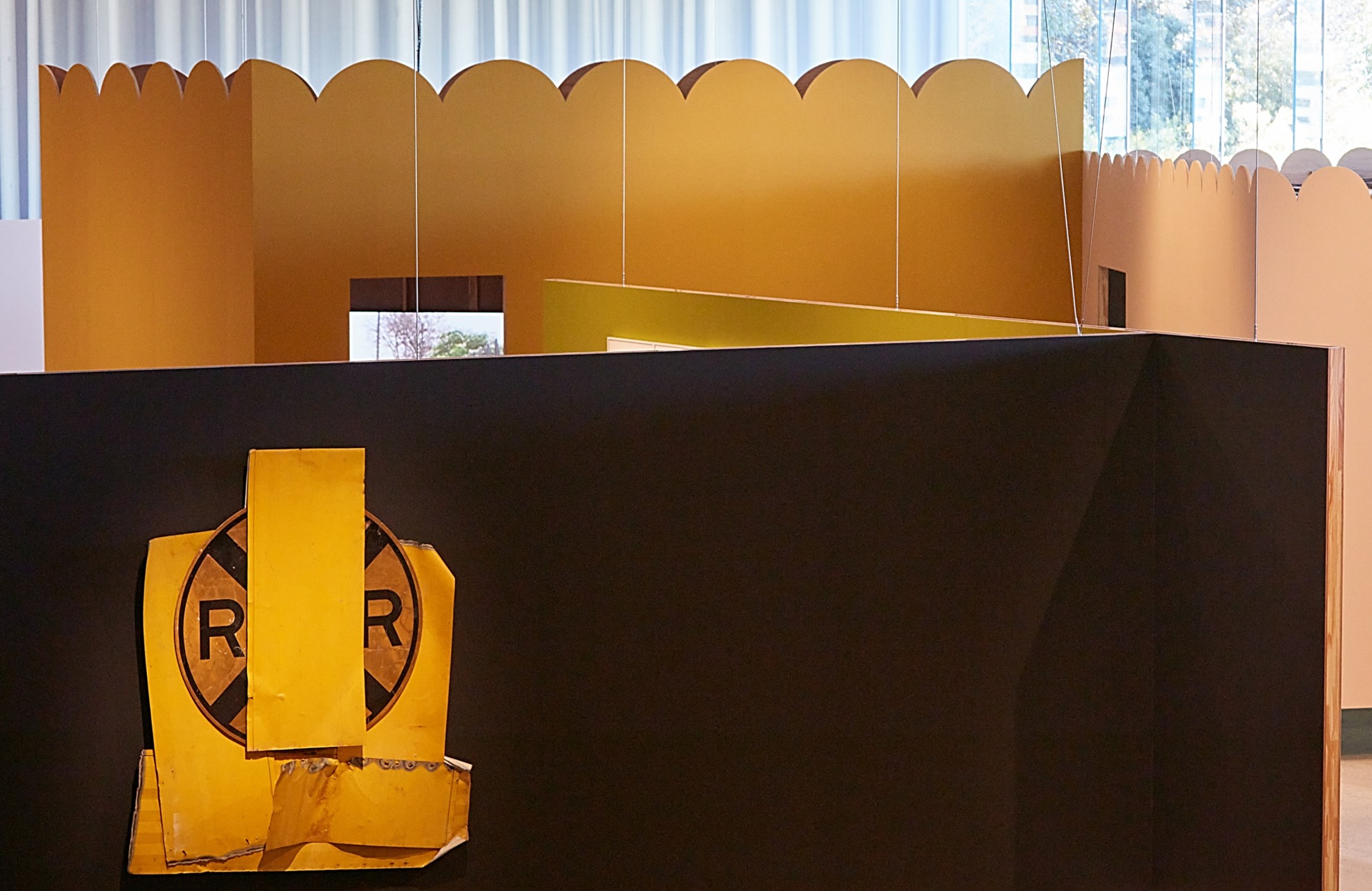 Installation view details, Thomas Demand, Kaldor Public Art Project 38: Thomas Demand: The Object. Art Gallery of New South Wales, Naala Badu, 2025. In view, Robert Rauschenberg, Yellow visor glut, 1989. Photo Art Gallery of New South Wales, Jenni Carter.