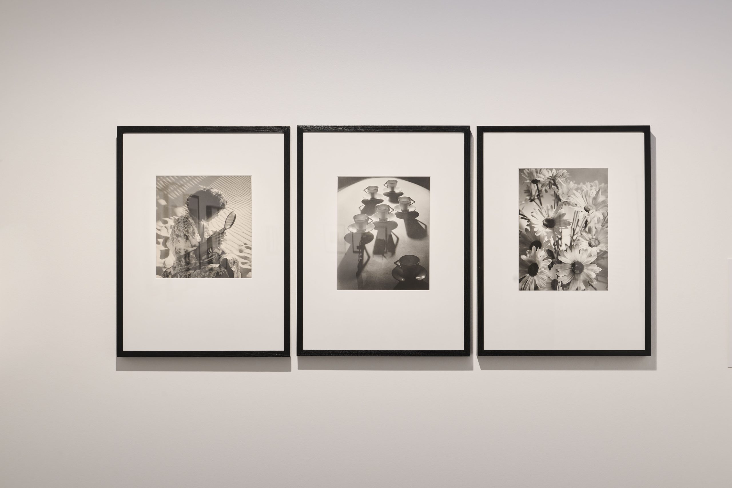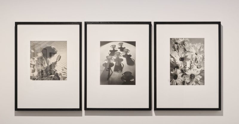 The early consolidation around Germany’s Bauhaus (1919–1933) influence is equally persuasive. Yamawaki Michiko’s miniature street photographs from 1933 introduce a crisp vision of the everyday, followed by concise experimental invocations of still life and the natural world: Elsa Thiemann’s dazzling opticality in Design for Wallpaper, 1930–31, Florence Henri’s dynamic, almost cinematic Nature morte (Still life), 1931, and Olive Cotton’s graphic whimsy in Teacup ballet, 1935.